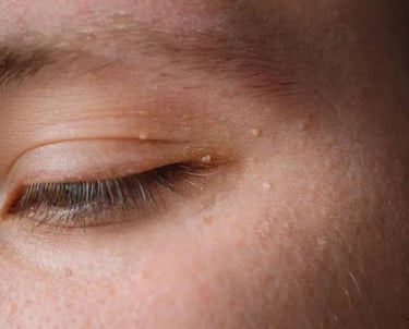 Tiny white bumps that won’t go away? Milia are common keratin-filled cysts that often appear around the eyes, cheeks, forehead, and nose.