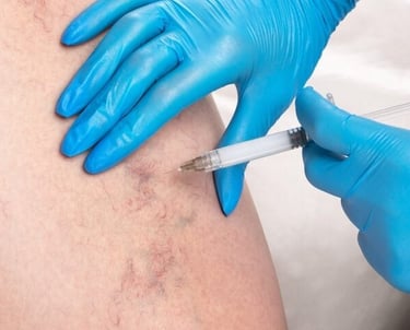 Sclerotherapy is a physician-performed medical treatment used to reduce the appearance of spider veins and select superficial varicose veins. A specialized solution is injected into the vein, causing it to close and gradually fade as the body naturally absorbs it.